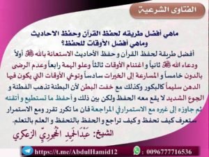 ماهي أضل طريقة لحفظ القرآن وحفظ الأحاديث وماهي أفضل الأوقاة
