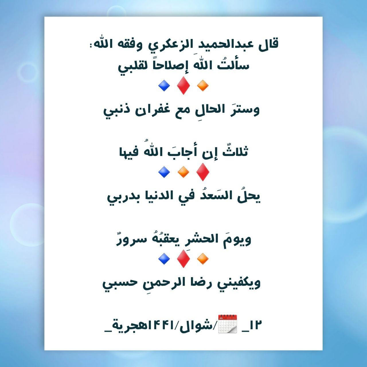 *1-سألتُ اللهَ إصلاحاً لقلبي*🔹♦️🔸*وسترَ الحالِ مع غفران ذنبي*