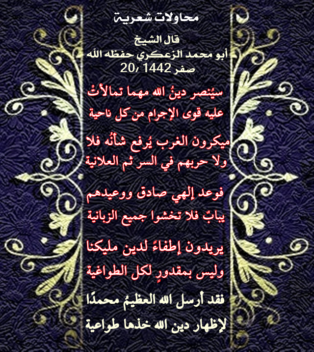 قال الشيخ أبو محمد الزعكري حفظه الله 20/ صفر 1442:
