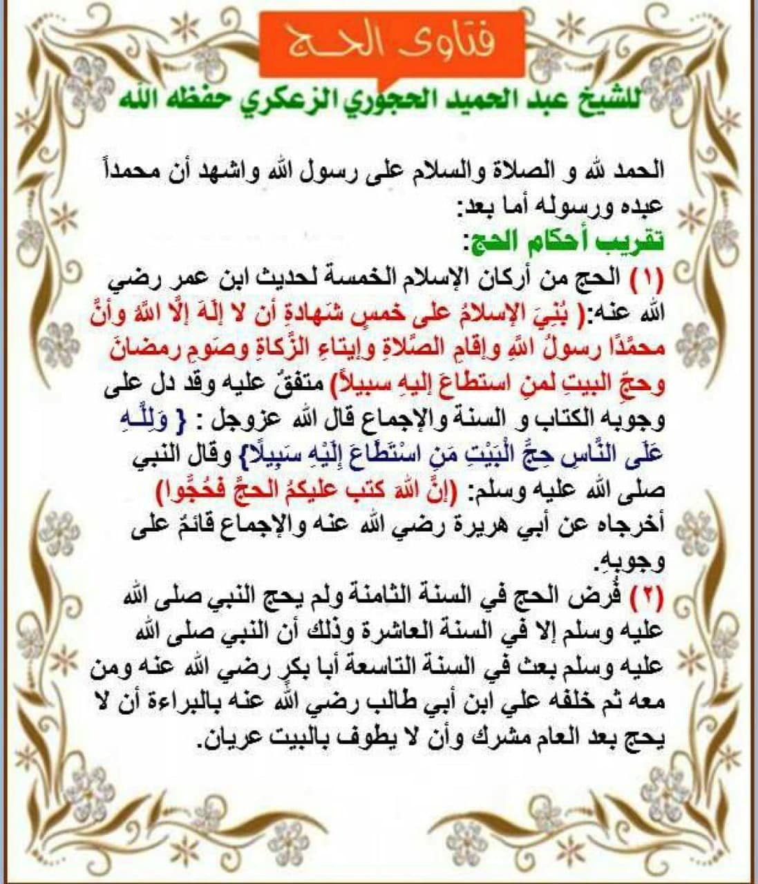 تقريب أحكام الحج منشور ***تقريب أحكام الحج بطائق