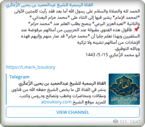 للشيخ أبي محمد عبدالحميد بن يحيى الزُّعكري حفظه الله.